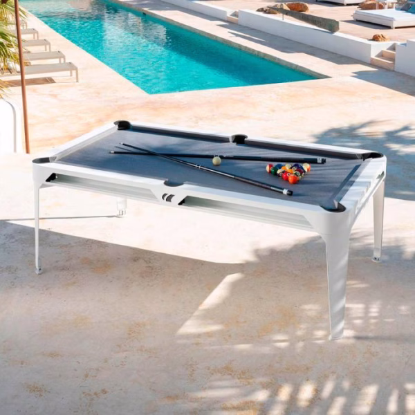 - Mesa de billar Hyphen diseñada para resistir condiciones climáticas extremas.