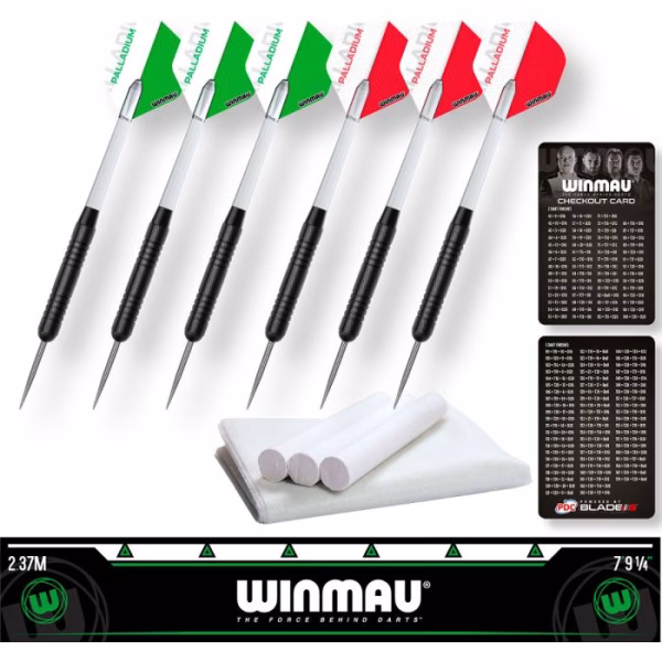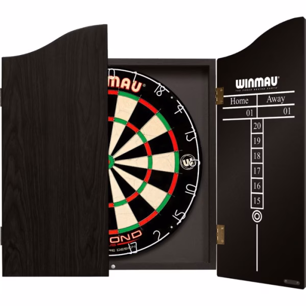Con el set profesional de dardos Winmau, tienes todo lo necesario para transformar tu afición en un auténtico deporte. Este completo set incluye un dardo Diamond Plus aprobado para competiciones oficiales, junto con un elegante armario clásico Deluxe en color negro con paneles de puntuación para “local” y “visitante” integrados en las puertas.