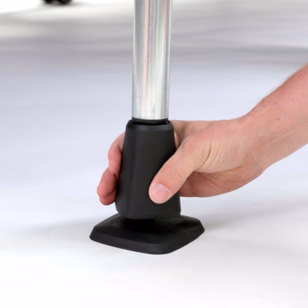 - Nivelación: pie ancho y sistema ajustable para suelos irregulares